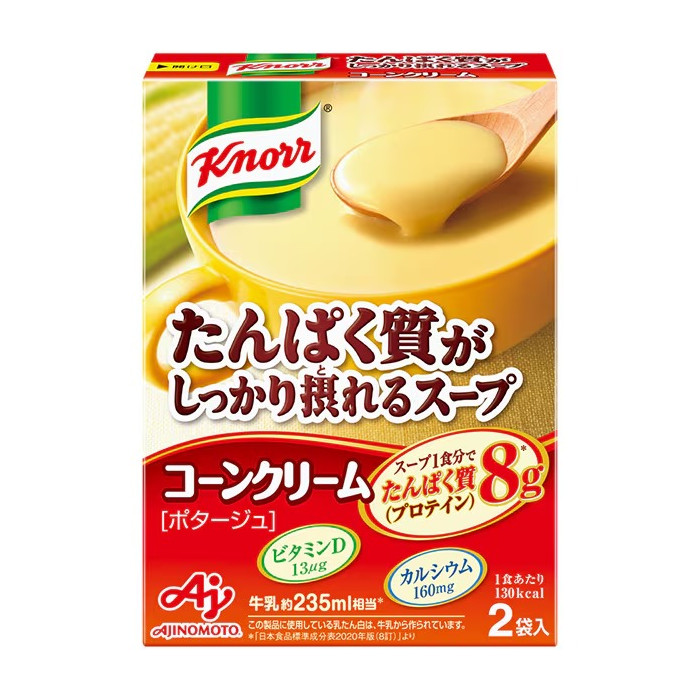 (영문명: Knorr Protein‑Rich Soup Corn Cream)메이커 / 브랜드 아지노모토 / 크노르 규격 / 구성 / 중량 총 58.4g (29.2g × 2봉)
