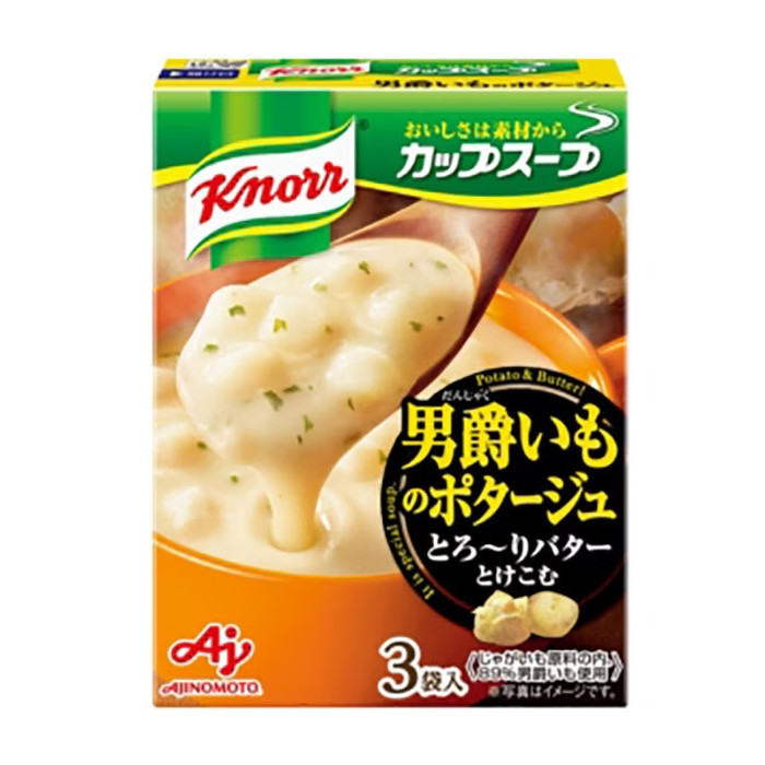 * 제품 패키지나 구성은 예고 없이 변경될 수 있습니다.상품명 크노르 컵스프 남작감자 포타주 52.8g (영문명: Knorr Cup Soup Baron Potato Potage) 메이커 / 브랜드 아지노모토 / 크노르 규격 / 구성 / 중량 총 52.8g (17.6g × 3봉) ※ 상품리뉴얼로 상품패키지 및 내용량이 변경될 수 있습니다. 포장 무게 (추정) 약 70 g 내외 효능 / 기능 감자의 풍미를 살린 구수하고 부드러운 포타주 스프로, 담백하면서도 고소한 맛이 특징입니다.