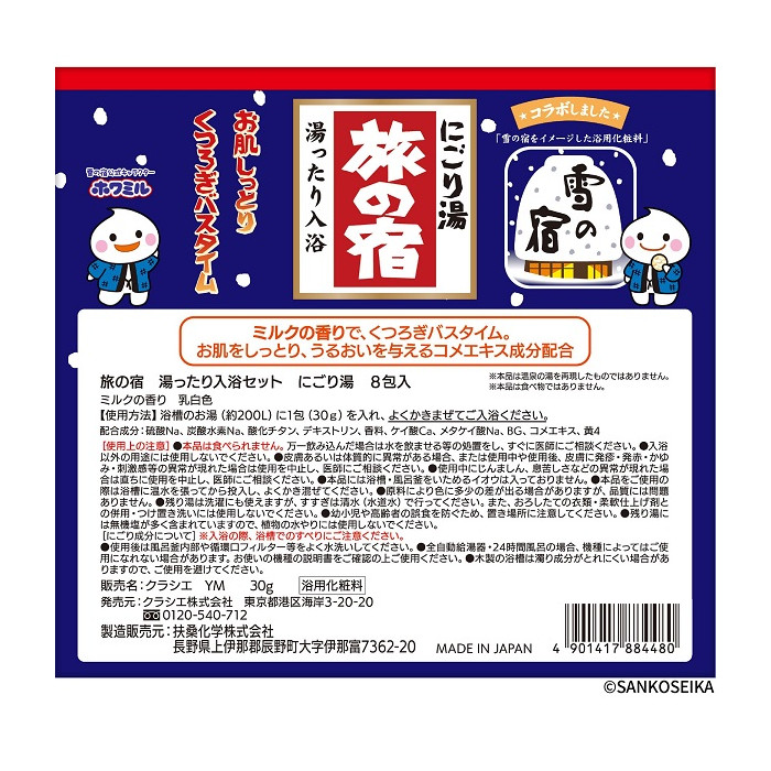 인기 온천 입욕제 시리즈 ‘여행의 숙소’와 인기 쌀과자 브랜드 ‘눈의 숙소’가 처음으로 콜라보한 한정판 상품으로,