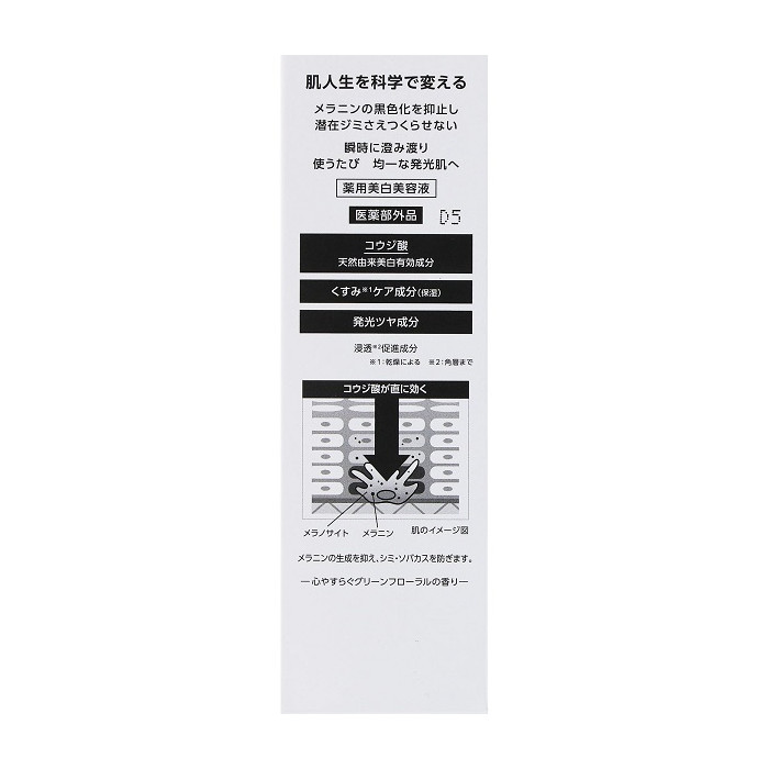 손바닥에 1~2회 펌핑하여 얼굴 전체에 부드럽게 펴 발라 흡수시켜 주세요.성분/분량 • 유효성분: 코우지산 (미백 활성 성분)