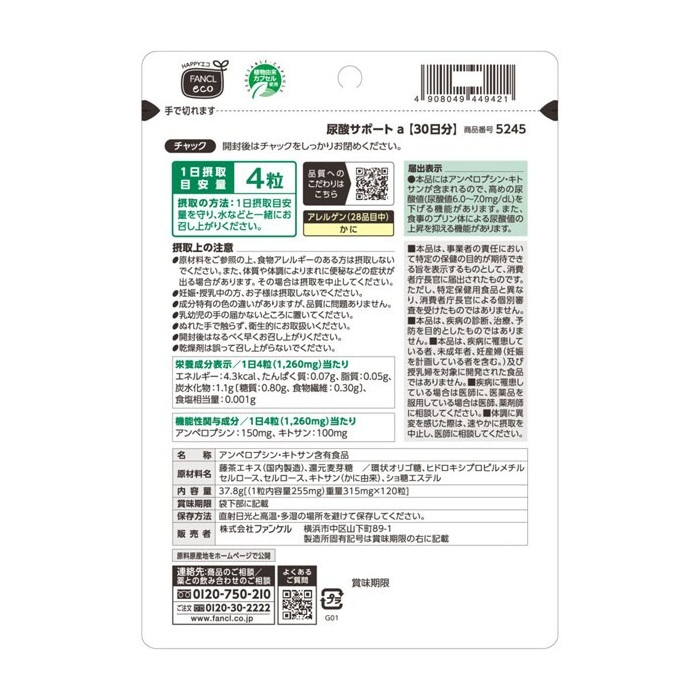 FANCL 판클 요산 서포트 30일분