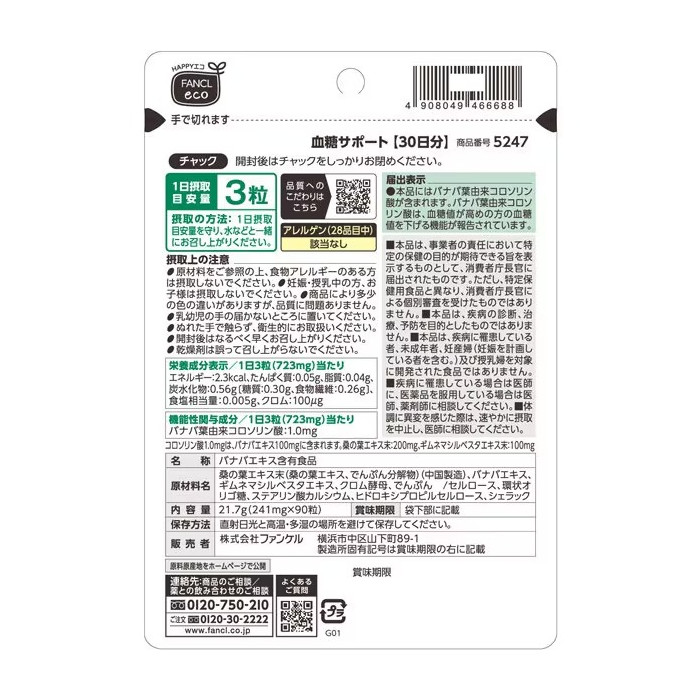 건강/건강보조제 > 피부건강/기미/주근깨 > FANCL 판클 혈당 서포트 30일분 90정입
