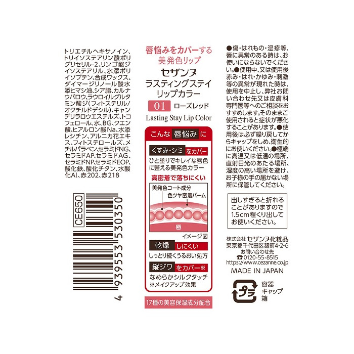 Cezanne 립 컬러 립스틱 로즈레드 세잔느 일본 코스메 발색 지속 보습 립 메이크업 데일리 컬러상품 정보 고시