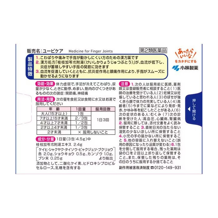 • 복용 후 알레르기 증상(발진, 가려움 등)이 나타나면 즉시 중단하고 전문의와 상담하세요유비케어 관절 통증 완화 손가락 뻣뻣함 한방 의약품 제2류 의약품 생약 관절약 일본 관절약 코바야시 관절상품 정보 고시