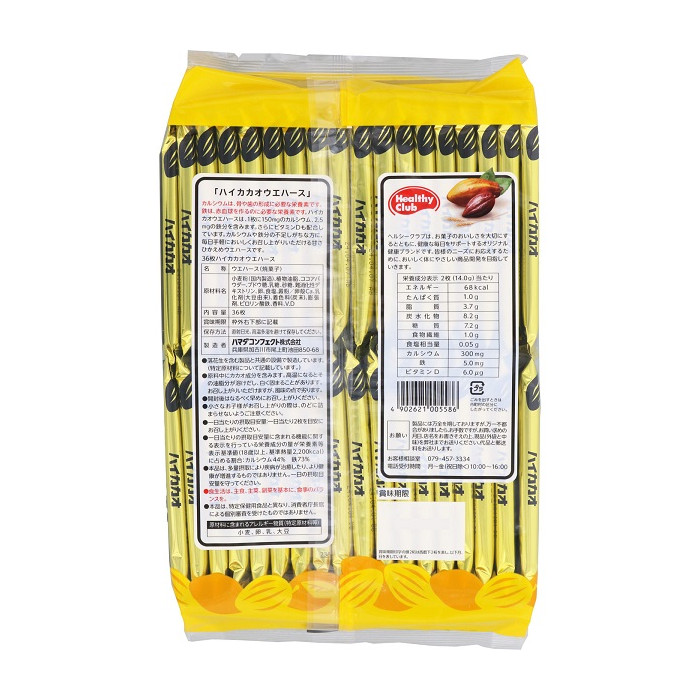 하이카카오 간식 고카카오 웨하스 건강 간식 영양기능식품 비타민D 철분 칼슘 하마다콘페크트상품 정보 하마다 하이카카오 웨하스 36매는 고함량 카카오 초콜릿을 사용해 달지 않고 진한 풍미를 느낄 수 있는 웨하스 과자입니다. 바삭한 식감과 함께 칼슘, 철분, 비타민 D가 함유되어 있어 매일 섭취하기 좋은 영양기능식품입니다. 가벼운 간식으로도, 부족한 영양을 보충하는 데에도 안성맞춤입니다. 영문명 Hamada Confect High Cacao Wafers 36 pieces 포장 무게(추정) 약 280g 효능 • 칼슘이 뼈 건강 유지에 도움을 줍니다.