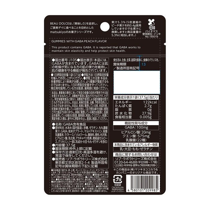 마츠키요 BEAU DOLCE 가바 함유 복숭아 맛 구미 37.5g