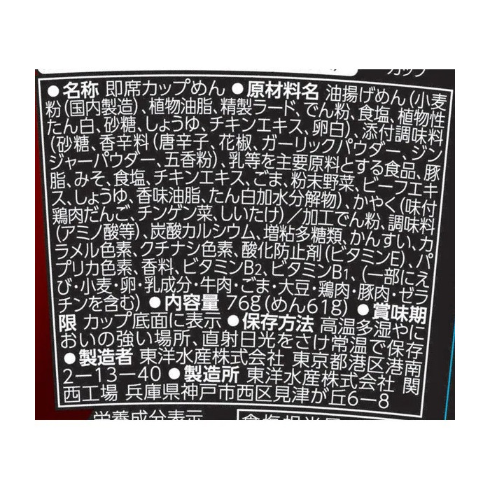 - 알레르기 유발 성분을 반드시 확인하세요.※ 상품리뉴얼로 상품패키지 및 내용량이 변경될 수 있습니다. 마루짱QTTA시비레, 일본마라탕라면, 일본매운라면, 마루짱라면, 동양수산컵라면, 화자오라면, 마라탕면, 일본인기라면상품 정보 고시