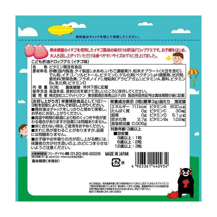 유니매트리켄 어린이용 간유 드롭 구미 (딸기맛) 90정