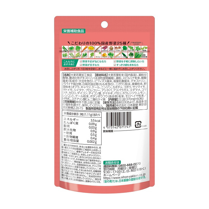• 씹지 말고 그대로 삼켜주세요성분 / 분량 • 일본산 25종 채소 분말 및 추출물