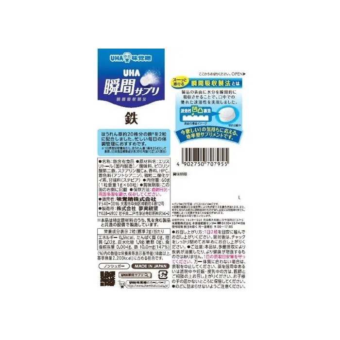 UHA 철분 순간 서플리먼트 30일분철분 보충제, 일본 영양제, UHA 철분, 철분 서플리먼트, 여성 건강 영양제, 미네랄 보충, 순간 서플리, 일본 건강식품