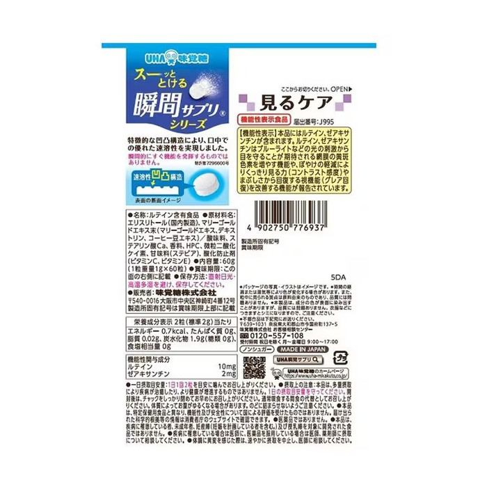 UHA 미각당 순간서플리 눈케어 30일분 (UHA Mikakuto Shunkan Supplement Eye Care 30 Days)