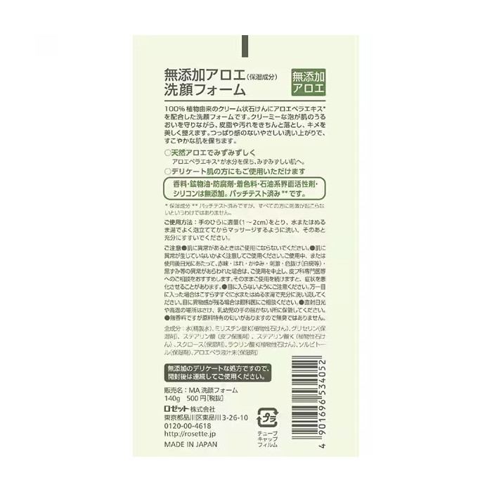로제트 무첨가 알로에 세안폼 140g (ROSETTE Additive-Free Aloe Facial Wash 140g)