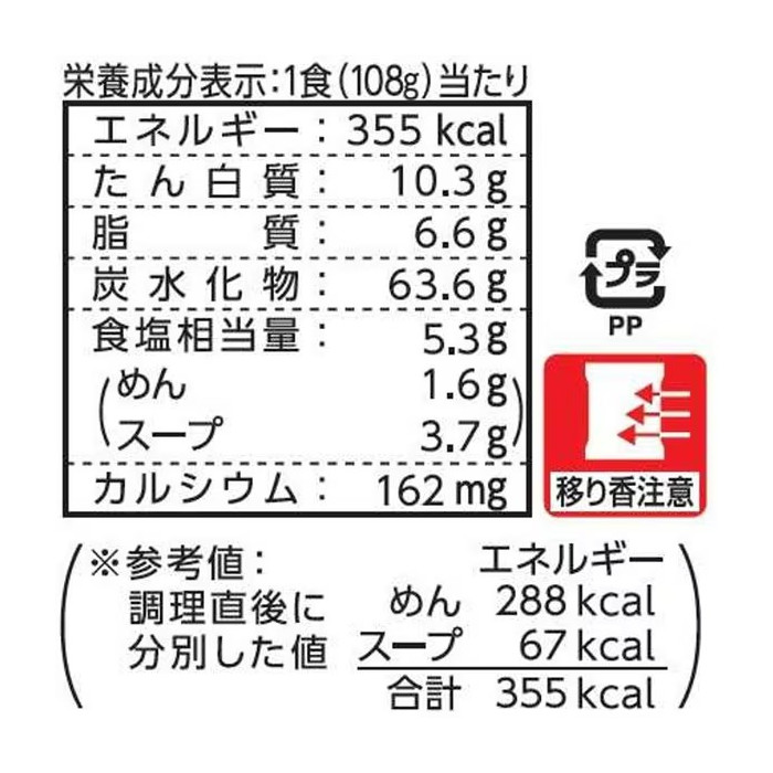 스프: 된장, 돼지고기엑기스, 식염, 식물유지, 설탕, 채소엑기스, 향신료, 효모엑기스 등