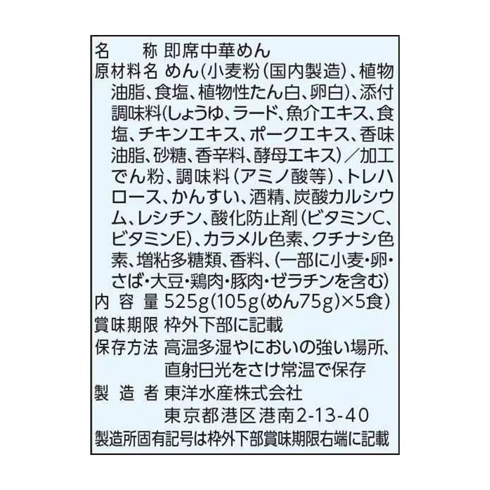 식품/가공식품 > 통조림/밥도둑/후리카케 > 토요수산 마루짱 정면 중화소바 와후 간장맛 5식팩
