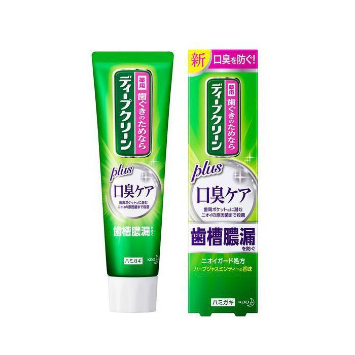 상품 설명 카오 딥클린 약용 치약 구취 케어 (100g)는 잇몸 건강은 물론, 신경 쓰이는 입 냄새까지 동시에 해결하고 싶은 분들을 위해 탄생했습니다. 치주 포켓 깊숙이 숨어있는 구취 원인균을 살균하고, 냄새의 원인이 되는 단백질 오염물을 씻어내 주는 '니오이 가드(냄새 방어) 처방'이 특징입니다. 1,450ppm 고농도 불소로 충치까지 빈틈없이 예방하며, 상쾌한 허브 자스민 티 향이 입안 가득 퍼져 오랫동안 기분 좋은 상쾌함을 유지해 줍니다. 사양 제조사 카오 주식회사 (Kao) 상품명 딥클린 약용 하미가키 구취 케어 (ディープクリーン 口臭ケア) 상품 용량 100g (의약부외품) 불소 함유량 1,450ppm (고농도) 제품 특징 및 주요 효능 - **니오이 가드 처방:** 살균 성분(CPC)이 구취 원인균을 박멸하고, 흡착 성분(구리클로로필린Na)이 불쾌한 냄새를 직접 잡아줍니다.