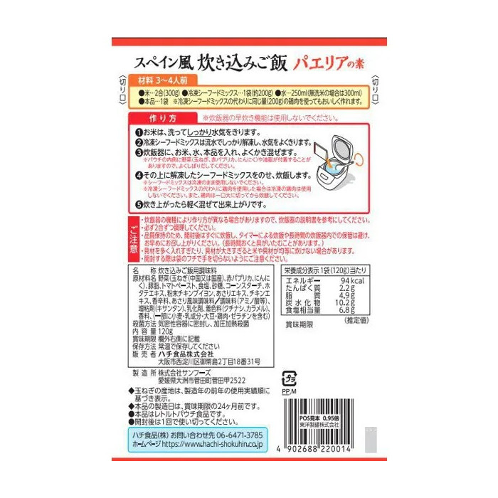 상품 정보 하치식품 스페인식 파에야 밥 양념은 일본 식품 브랜드 하치식품에서 출시한 간편 조리용 밥 양념 제품으로, 집에서도 손쉽게 스페인 대표 요리인 파에야의 풍미를 즐길 수 있도록 만들어진 제품입니다.