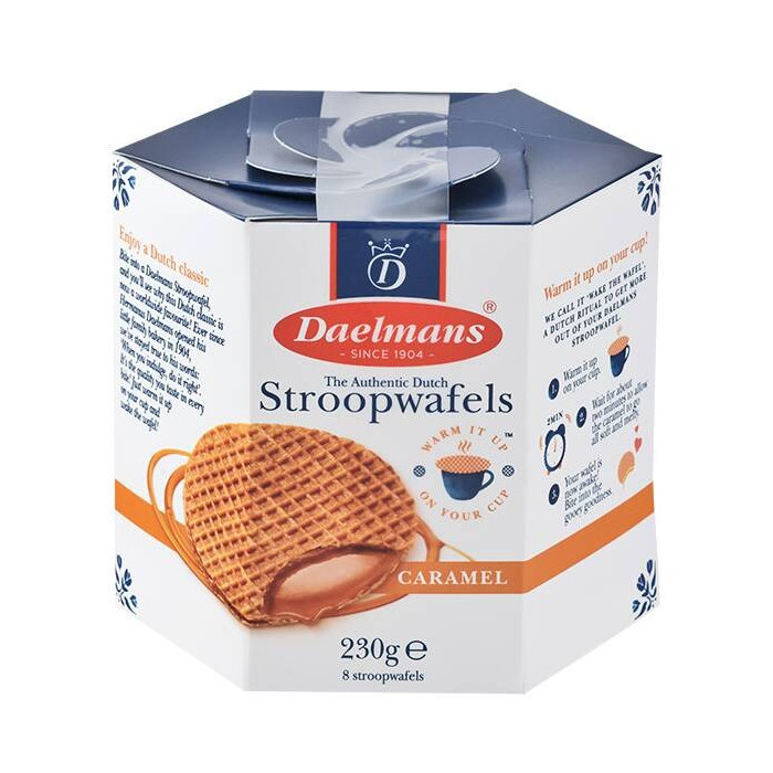 상품 설명 다알만스(Daelmans) 카라멜 와플 백 (230g)은 1904년부터 이어져 온 네덜란드의 전통 레시피로 만든 정통 스트롭와플입니다. 얇게 구운 와플 사이에 부드럽고 쫀득한 카라멜 필링을 듬뿍 샌드하여, 한 입 베어 물면 입안 가득 달콤함과 시나몬 향이 조화롭게 퍼집니다. 따뜻한 커피나 홍차 잔 위에 올려두어 카라멜을 살짝 녹여 먹는 방식은 전 세계적으로 사랑받는 '홈카페'의 정석입니다. 사양 브랜드 다알만스 (Daelmans) / 네덜란드 상품명 카라멜 와플 백 (キャラメルワッフルバッグ) 내용량 230g (약 8개입) 보관 방법 직사광선 및 고온다습한 곳을 피해 서늘한 곳에 보관 더욱 맛있게 즐기는 팁 - **잔 위에 올려두기:** 따뜻한 아메리카노나 차를 담은 컵 위에 와플을 덮개처럼 올려두세요. 약 1~2분 후, 음료의 온기로 카라멜이 부드럽게 녹았을 때 드시면 환상적인 식감을 즐길 수 있습니다.