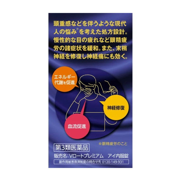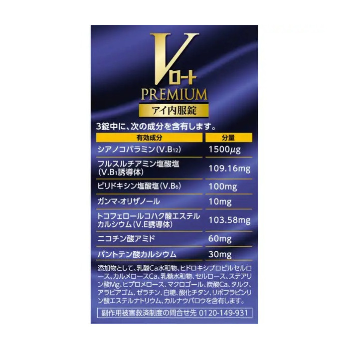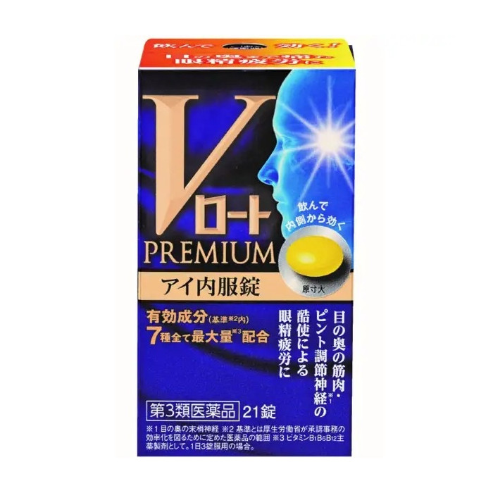 로토 눈영양제, 일본 눈건강 영양제, 로토 아이 비타민, 눈 피로 개선 영양제, 일본 비타민B 영양제, 눈 영양제 추천, 로토 프리미엄 아이, 일본 눈건강 보조제상품 정보 상품명 로토 V 프리미엄 아이 내복정 21정 (눈 피로 개선 비타민) 메이커 로토제약 상품 본체 사이즈 21정 ※ 상품리뉴얼로 상품패키지 및 내용량이 변경될 수 있습니다. 상품 설명 로토 V 프리미엄 아이 내복정은 일본 로토제약에서 출시한 눈 건강 관리용 의약품으로, 장시간 스마트폰이나 컴퓨터 사용으로 인한 눈의 피로와 흐릿함 개선을 목적으로 개발된 제품입니다.