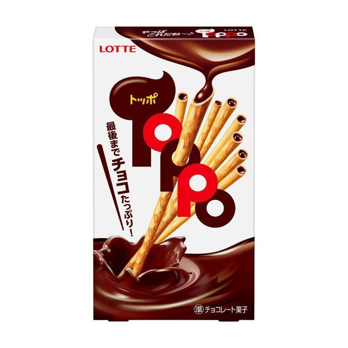 상품 정보 (초코 스틱 과자) 롯데 토포 (Toppo) 2봉지입은 "마지막까지 초코가 가득!"이라는 슬로건으로 유명한 일본 롯데의 대표 초코 과자입니다. 고소하게 구워낸 바삭한 프레첼 스틱 안에 달콤한 초콜릿을 끝까지 꽉 채워 넣어, 처음부터 끝까지 변함없는 맛을 즐길 수 있습니다. 초콜릿이 스틱 내부에 들어있어 손에 녹아 묻지 않으므로 공부나 업무 중에 간편하게 즐기기 좋습니다. 제품 사양 상품명 롯데 토포 (Toppo / トッポ) 구성 1갑 내 2봉지 개별 포장 주요 성분 밀가루(국내제조), 설탕, 식물유지, 전분유, 카카오매스 등 알레르기 성분 우유, 밀, 대두 포함 보관 방법 28℃ 이하의 서늘한 곳에 보관 주요 특징 - **속이 꽉 찬 초콜릿:** 프레첼 스틱의 양 끝까지 초콜릿이 밀도 있게 채워져 있어 만족감이 높습니다.